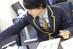 ハンサムカウントダウンカレンダーの色紙を書く渡部と水田。 迷いなく書き終えた渡部はハンサムメンバー最速で、 「ここ何色にしよう!?」と悩みに悩んでいた水田は数十分の間、色紙と睨めっこしていました(笑)
