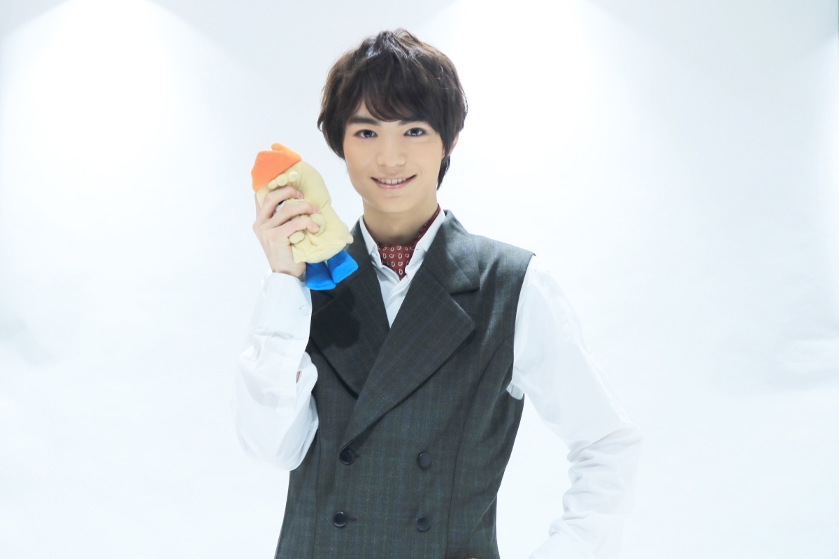 小道具の懐中時計を手に、「僕、懐中時計好きなんですよ!」と興味津々の様子。