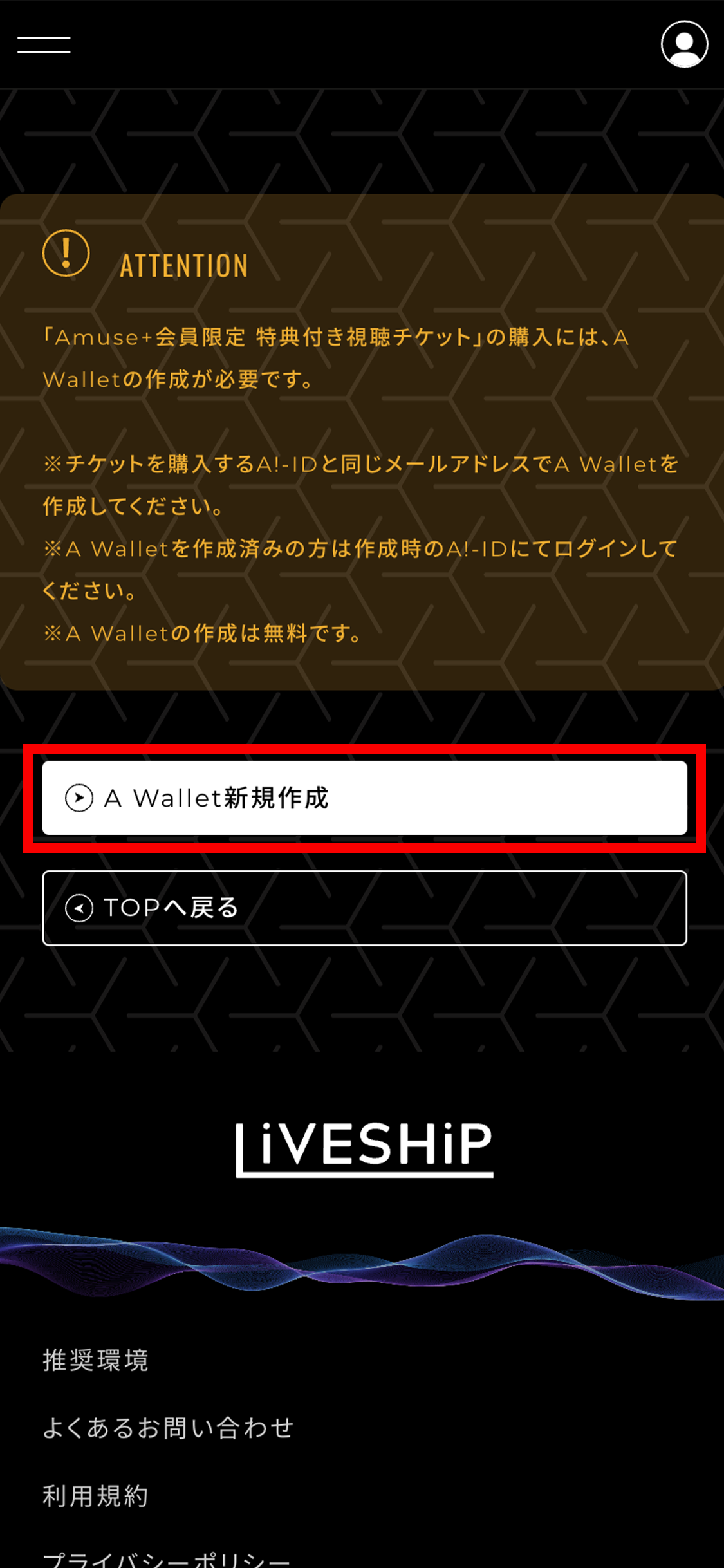 LIVESHIPにて販売中のAmuse Presents SUPER HANDSOME LIVE 2022 “ROCK YOU! ROCK ME!!”「Amuse+会員限定 特典付き視聴チケット」をご購入いただくためには、「A Wallet」の作成が必要となります。