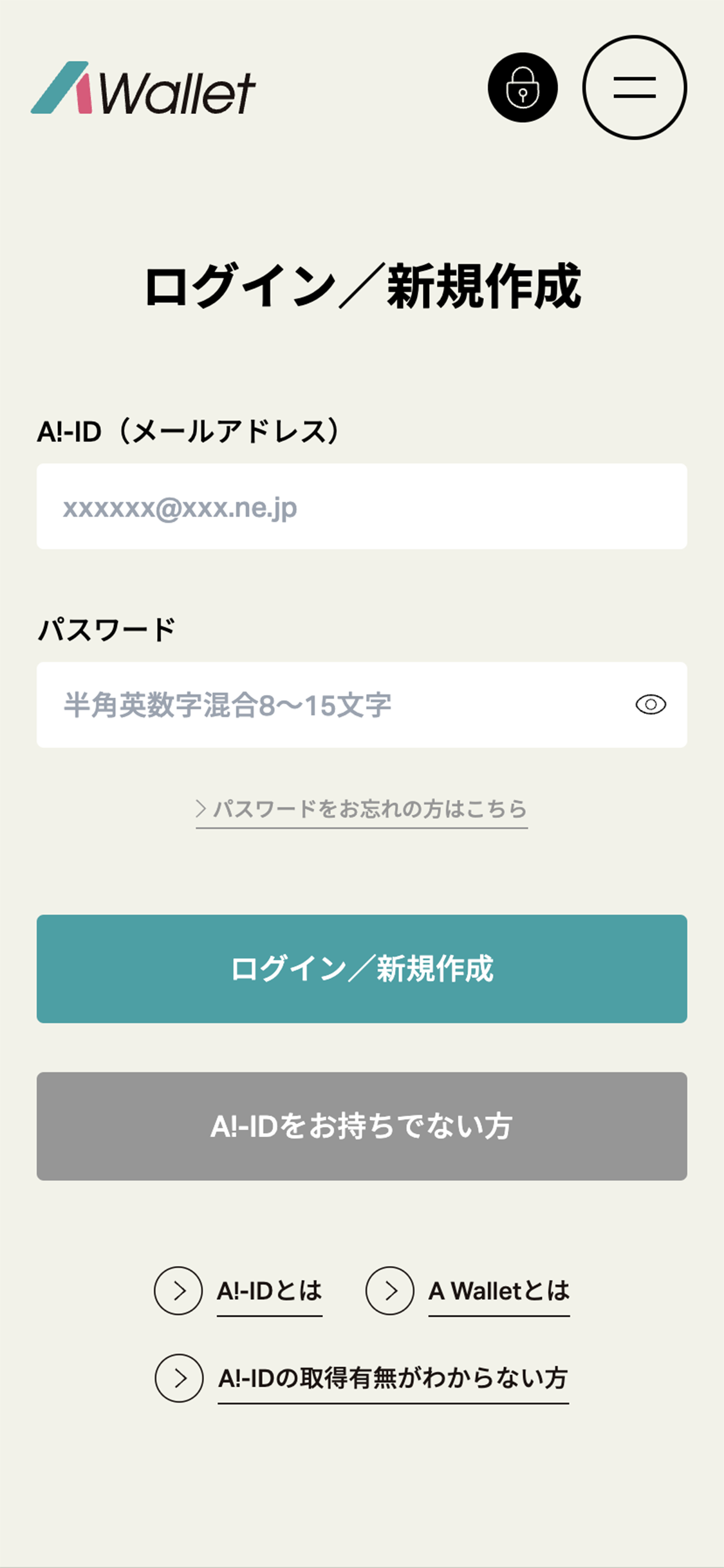 ②「A Walletを新規作成」を押してA Walletサイトへアクセス